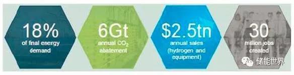 在2050年之前,通過更大規模的普及,氫能源將占整個能源消耗量約20%,全年的二氧化碳排放量能夠較現在減少約60億噸,能夠承擔將全球變暖控制在2℃以內所需二氧化碳減排量中的約20%。