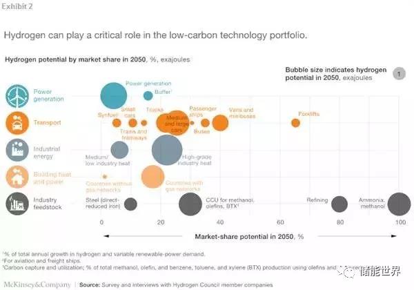 2017年,聯合國波恩氣候變化會議(COP23)舉辦之際,Hydrogen Council(國際氫能源委員會)的18位企業領導人也齊聚德國波恩,在麥肯錫管理咨詢公司的協助下,發布了全球首份氫能源未來發展趨勢調查報告。該報告指出,氫能源是能源結構轉型的重要方式,并且能夠催生相當于2.5萬億美元的商業價值并同時創造3000多萬人的就業機會。